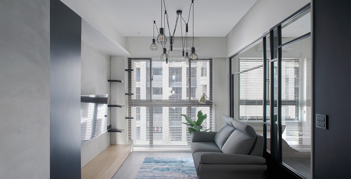 踏入室內,便感受到寬敞無礙的視野,輔以充沛採光與特殊訂製的鐵件,更傳遞輕透流暢的氣息,帶有精緻質感的灰色沙發、金屬燈飾,以及淺色的和煦木質,為這個以俐落灰階為主的住宅空間,增添了生活的溫度。