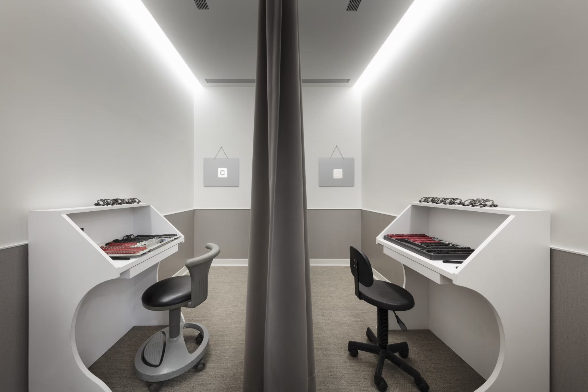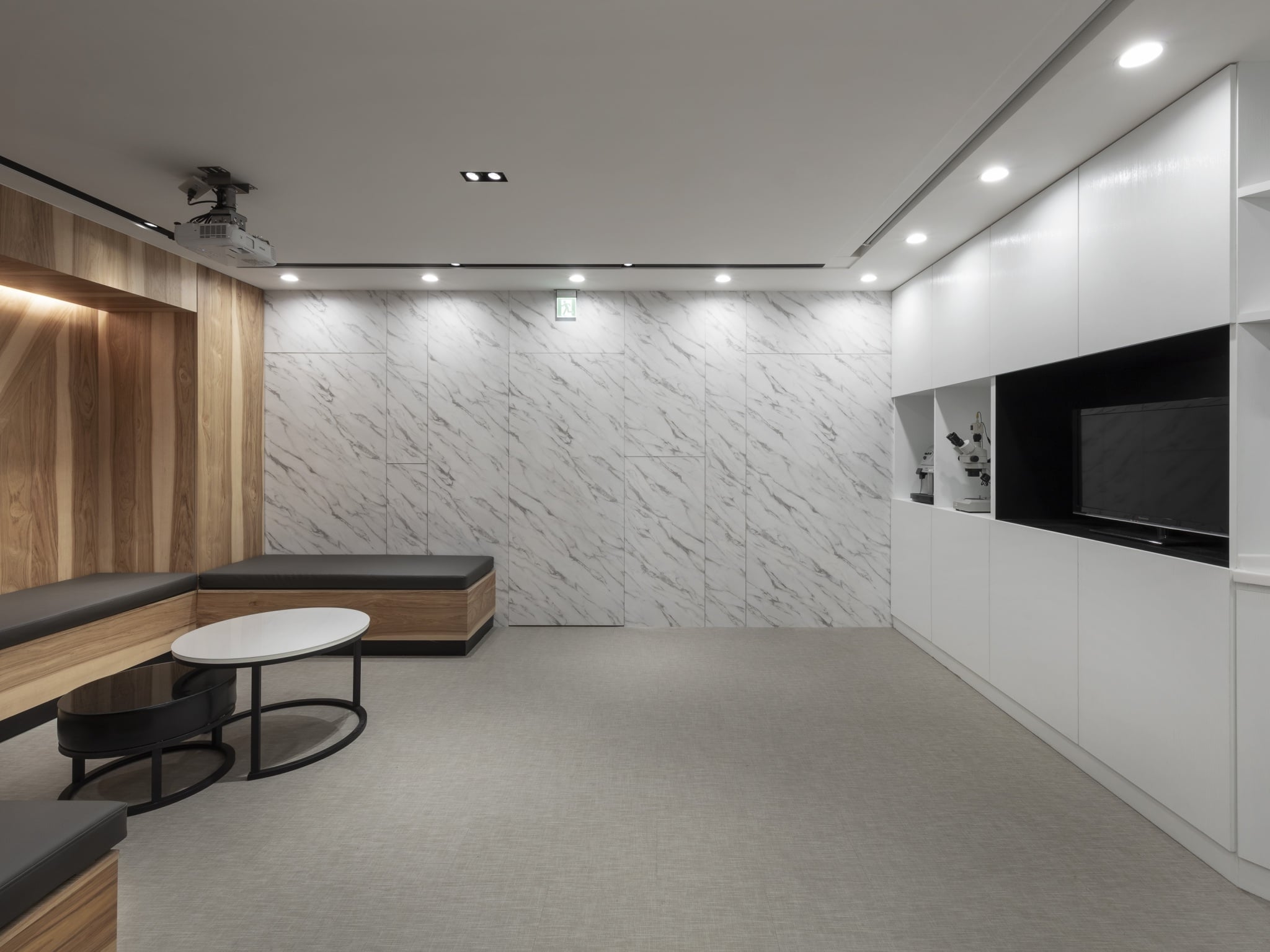 讓冰冷印象的醫療空間幻化為舒適放鬆的場域。,傳統老舊狹長型的格局,加重空間格局的限制。設計師在此案診所運用清新色調與溫暖木質感打破傳統氛圍,以及玻璃材質能將光線帶進室內,表現潔淨專業的空間,使看診的病患在舒適環境中,不會因動線雜亂而加重內心的焦慮,用細膩的設計規劃,增添患者對於看診的好感度。