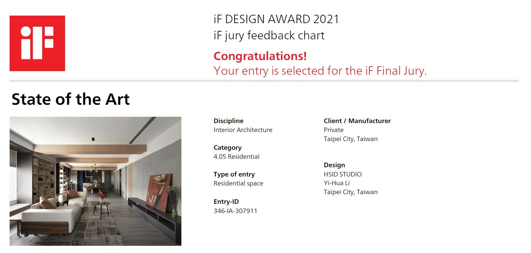 入圍德國 iF 設計大獎,設計的作品又再一次受91位國際評審團隊的青睞,這對我司在設計這條路上添上一枚錦旗,在未來也會秉持著專業、負責的態度對待每一件設計作品,完成客戶心目中的夢想。