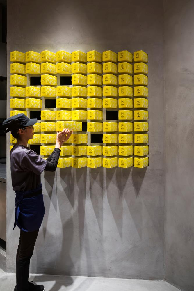 產品及包裝的起司黃 在灰砂漿的襯托之下更顯可口