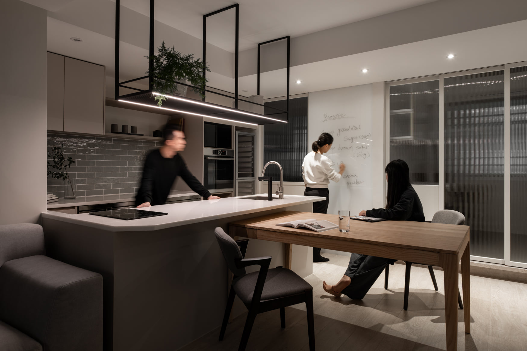 因為是老屋的關係,屋齡大概有30~40年左右,基礎的管線會重新配置,屋主希望未來能有更多的廚具設備,為了給女朋友在家裡空間中開一個烘焙小教室,或是烘培的教學,所以整體我們會以無印風格著重在於廚房及中島的空間讓住家也能成為一個能執行企劃的小教室。