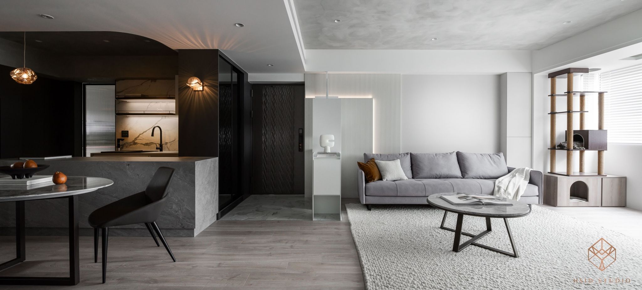 養小動物是現在年輕主流的趨勢,在搬家的時候總是不忘要幫他們思前想後,一方面要住的舒適另一方面要從他們習性與需求來考量,我們考量到貓咪喜歡隱密一點,完美實現了躲貓貓空間,創造了天空步道或貓跳台裝置的設計,融入在生活裡也讓整體設計不會感到突兀,善用牆壁,天花板,櫃體來配合整天的動線與設施,讓他們生活自在。