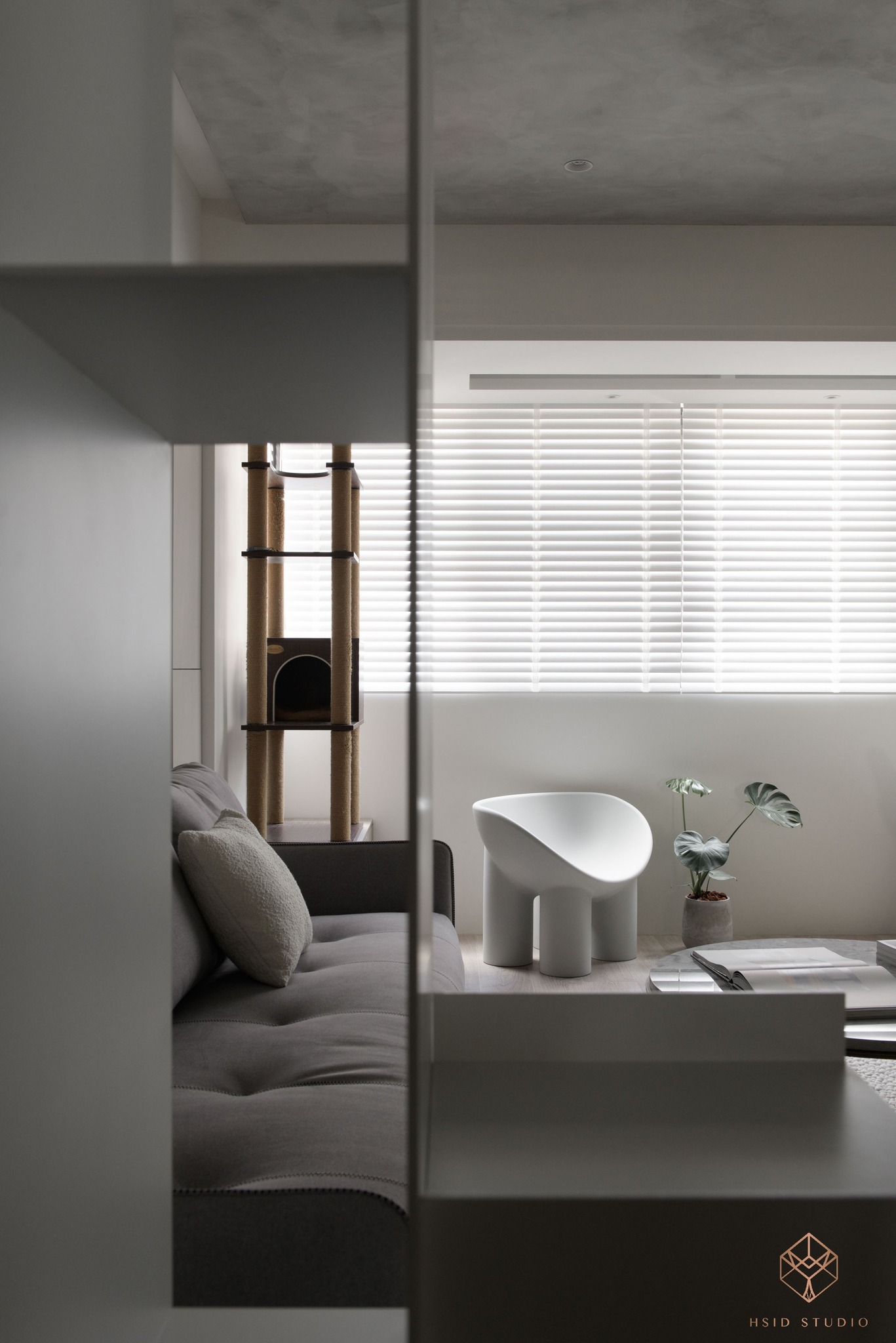 邁入人生下一個階段的眷侶,往往會考慮到生活風格的改變,老屋歷經歲月洗禮,存在管線老舊、空間與需求不符的窘境,我們將空間重新塑型搭配與小動物遊玩的空間,整體客廳選用簡單配色擁有奢華感,以純粹的設計擴大空間感,搭配上灰等低彩度色彩佐,不僅兼顧空間美學,還同時打造退休後喜愛的大空間