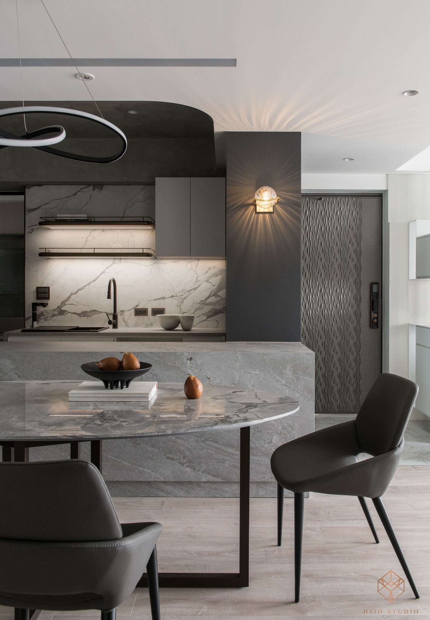 隨著習慣改變與科技改革,對於現代家庭而言,生活重心不再只是侷限於客廳,反而漸漸轉移至凝聚家人情感的餐廚空間,客餐廳一體化成了設計主流,如何讓兩者看似融洽,但實際功能還是有所差異,我們避免過多的複雜元素,讓整體空間呈現少即是多,擁抱寬敞舒適的格局,搭配上中島的設計,讓動線看起來有畫龍點睛效果。