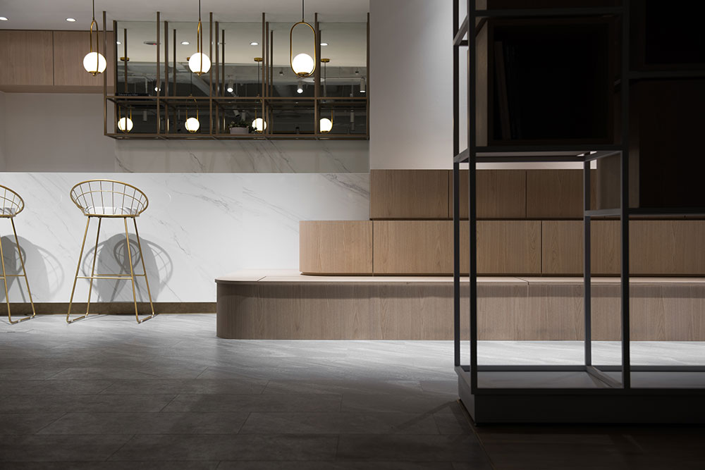 110坪 ‧ 老屋(16~30年) ‧ 商業空間 ‧ 現代風 HSID STUDIO以鐵件、木作貼皮、烤漆、石材、石塑地板的搭配應用,呈現現代風的風格氣息,將此間110坪老屋(16~30年)優雅詮釋成舒適愜意的商業空間。