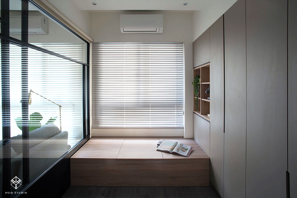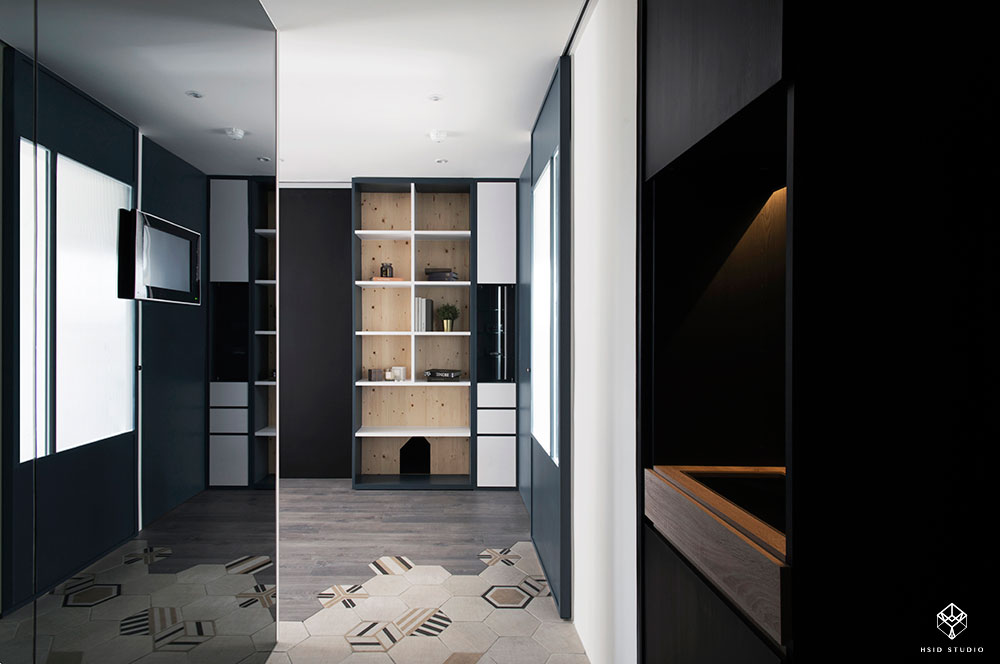 16坪 ‧ 新成屋(5年以下) ‧ 單層 ‧ 兩房 ‧ 混搭風 本案為HSID STUDIO的16坪混搭風新成屋(5年以下)設計作品,格局為單層兩房的居住空間。居住成員包含1位大人。全室建材的搭配,應用乳膠漆、六角磚/蜂巢磚、花磚、超耐磨木地板、鐵件、灰鏡、木作貼皮、烤漆、木百葉、長虹玻璃、仿清水模塗料,展現溫馨的居家氛圍。