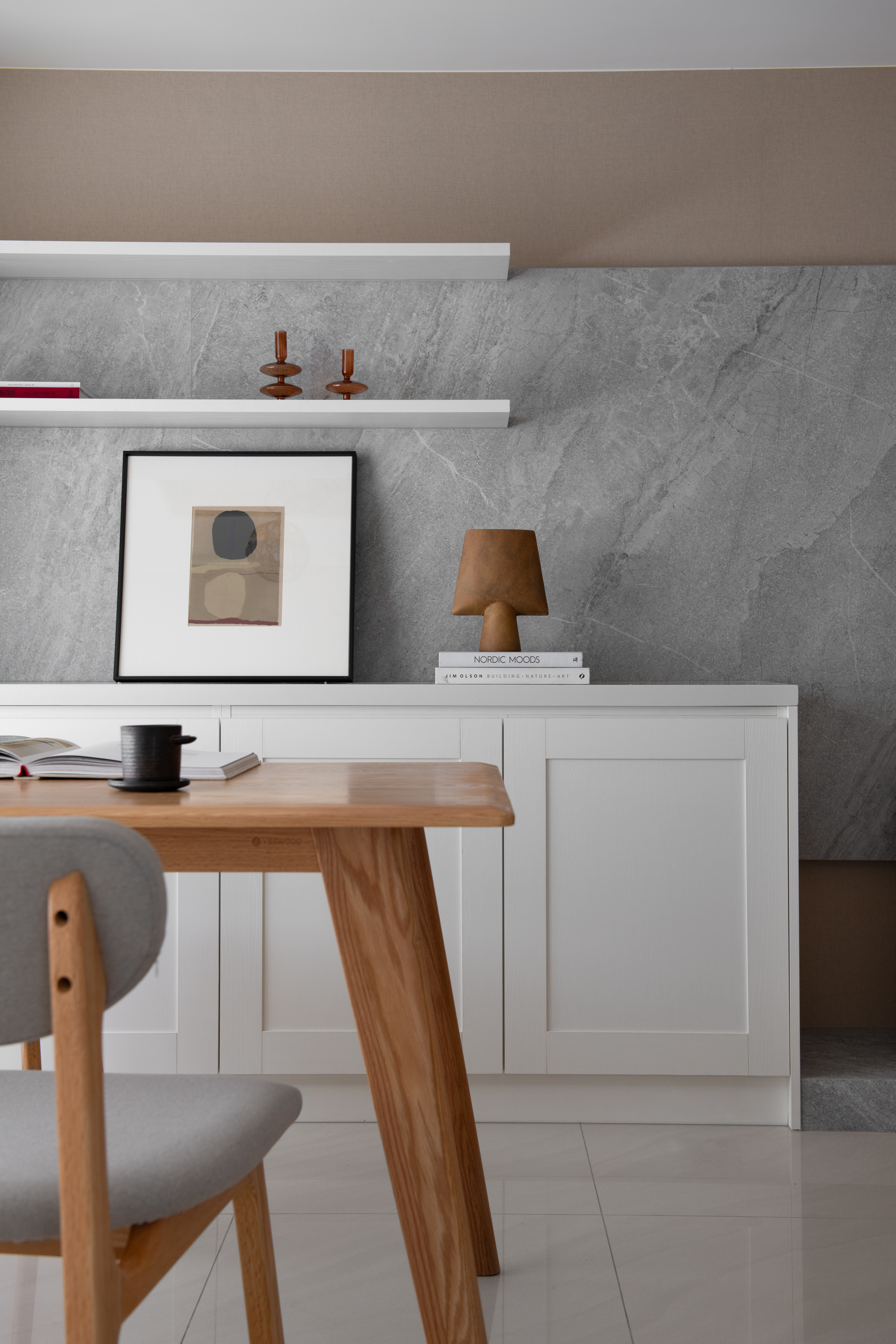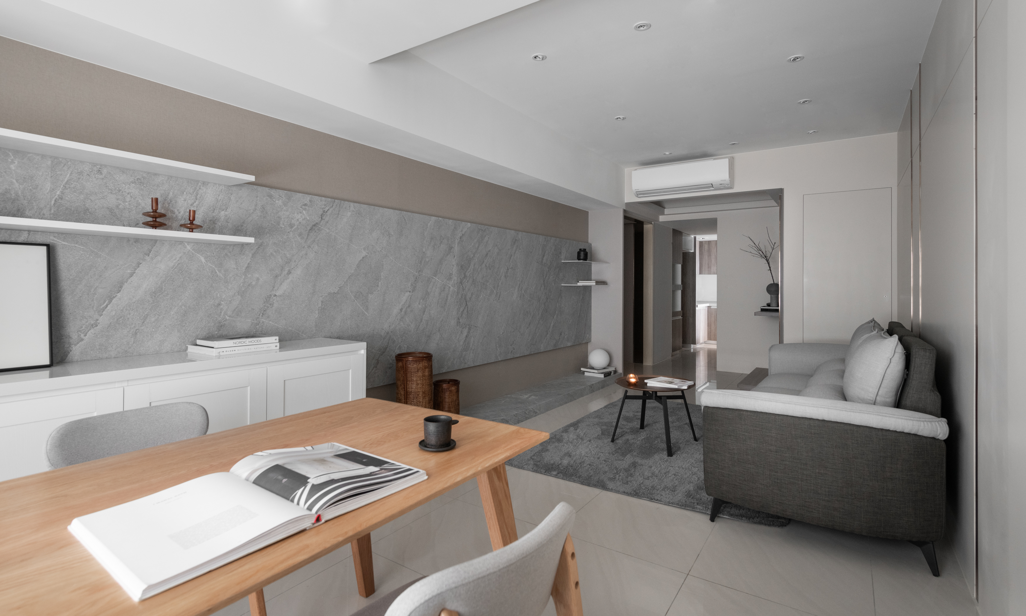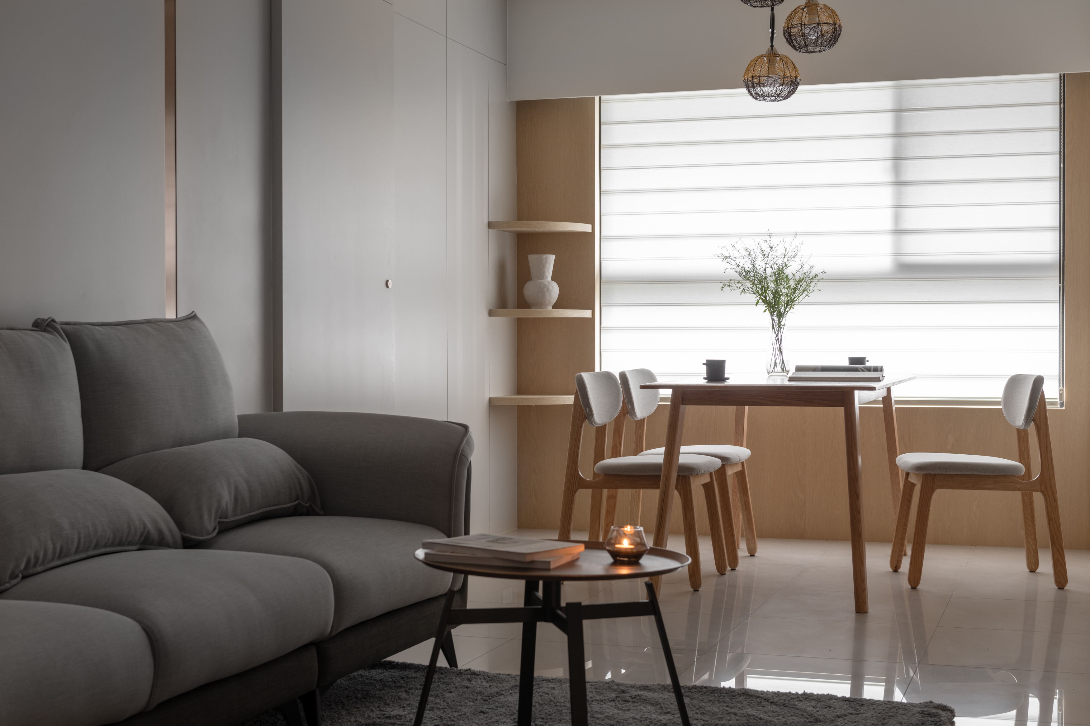屋主因為是退休夫妻,希望在生活品質上面首重居家安全,偏好暖木調搭配灰色系,在公共空間的規劃上保持開放是設計,格局之間的走道寬度盡量符合人體工學一體成形,隨著年齡增長,睡眠時間也會逐漸縮短,能讓房子保持光線充足,在空氣流通下,能讓身體保持在健康的狀態。