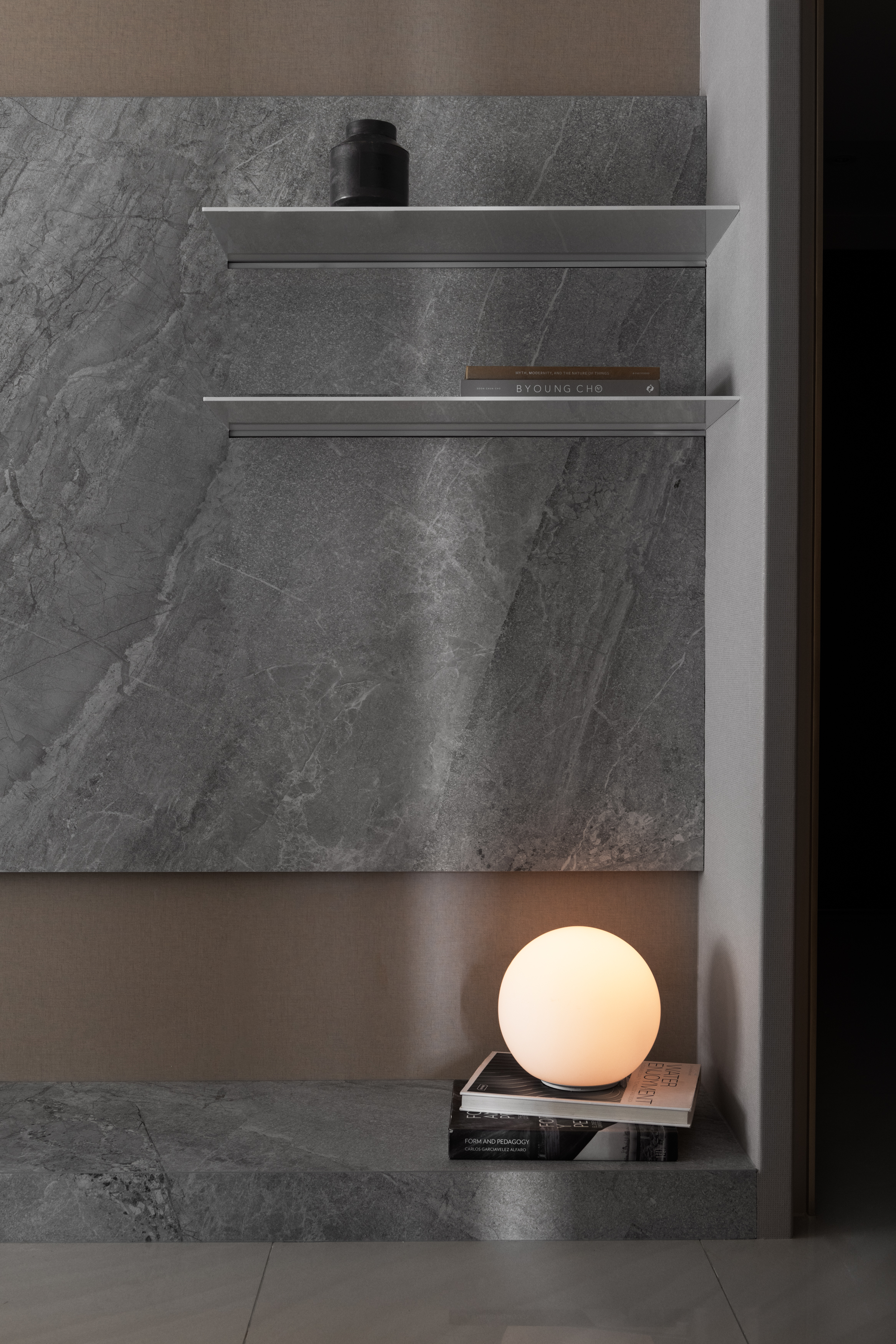 我們在設計退休宅時,應重視在人與人最佳相處距離,當人步入到一個年紀的時候都會開始考量到是否換屋,屋子的格局該如何打造,考慮到這些情感因素後,我們在色系與傢俱上面使用暖木搭配灰色色調,能夠帶來心情平靜的舒適陳設與建材組合,牆面也使用大理石風格搭配客製化的金屬烤漆來點綴,使空間增添一份色彩,臥房設計規劃會趨於單純化,減少收納櫃的設計,讓房間供能回歸到原始的睡眠型態。