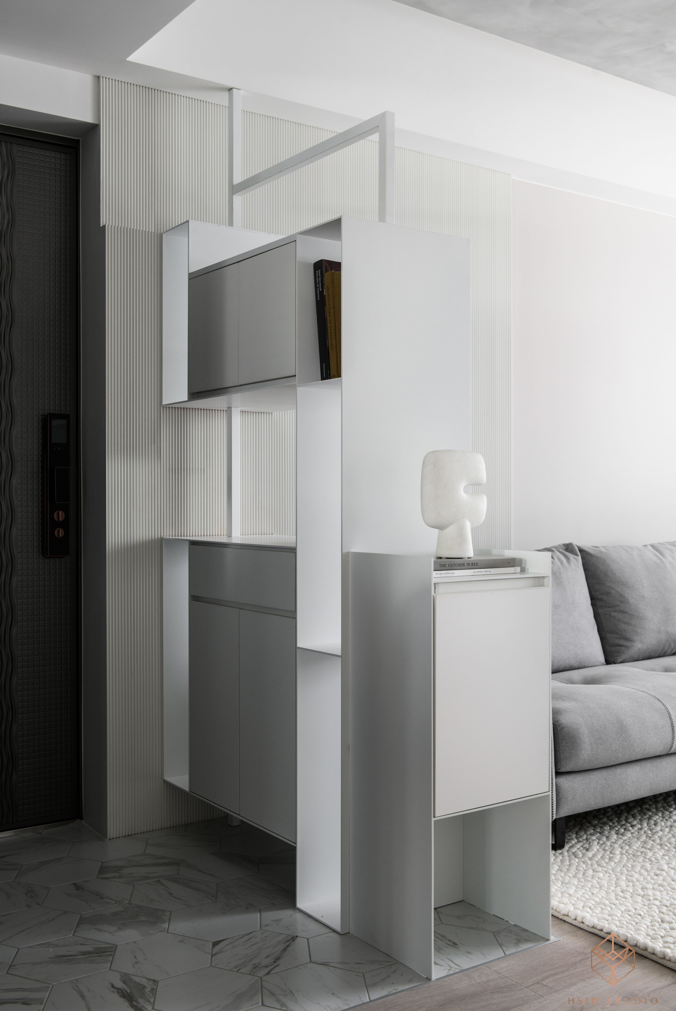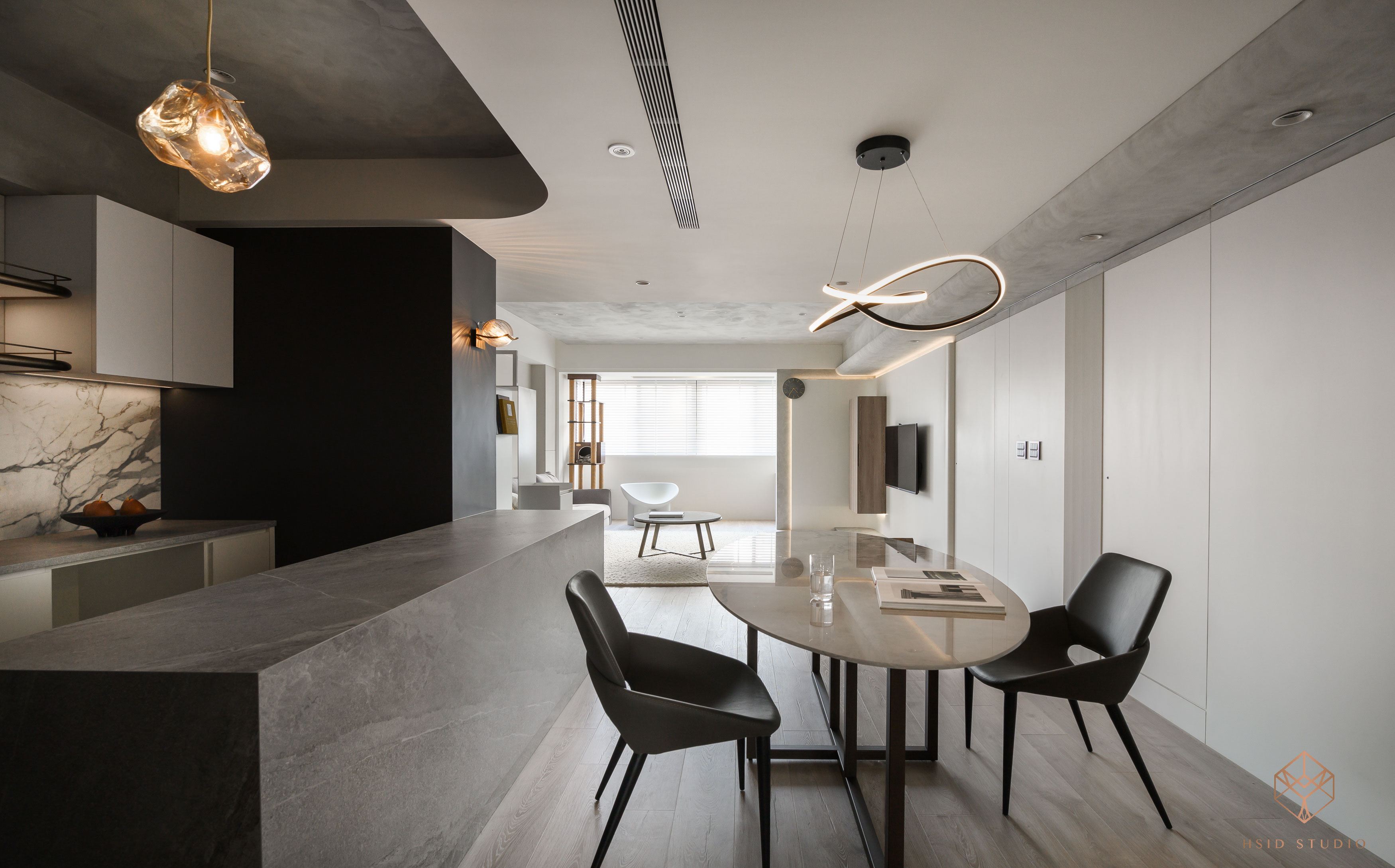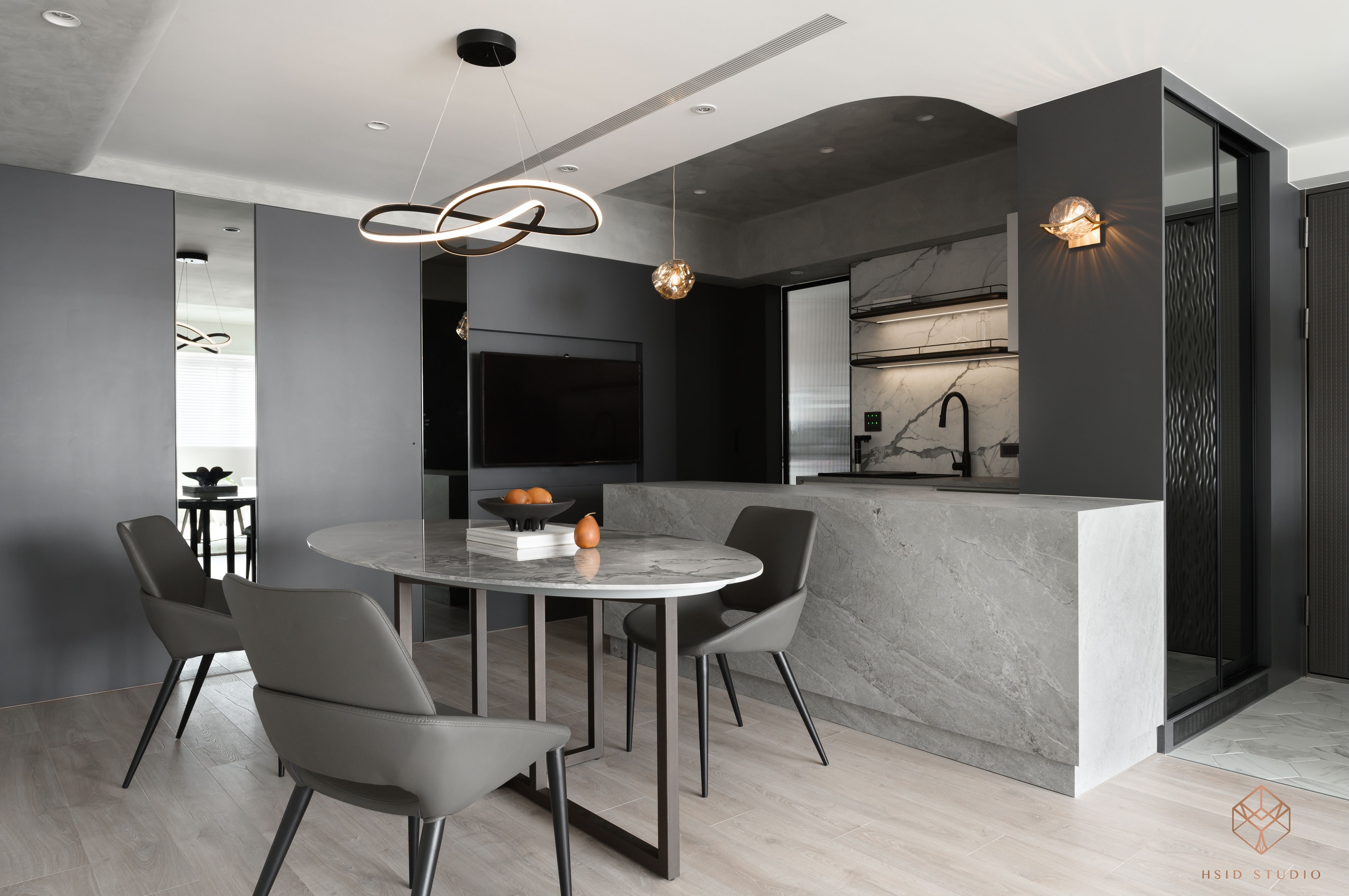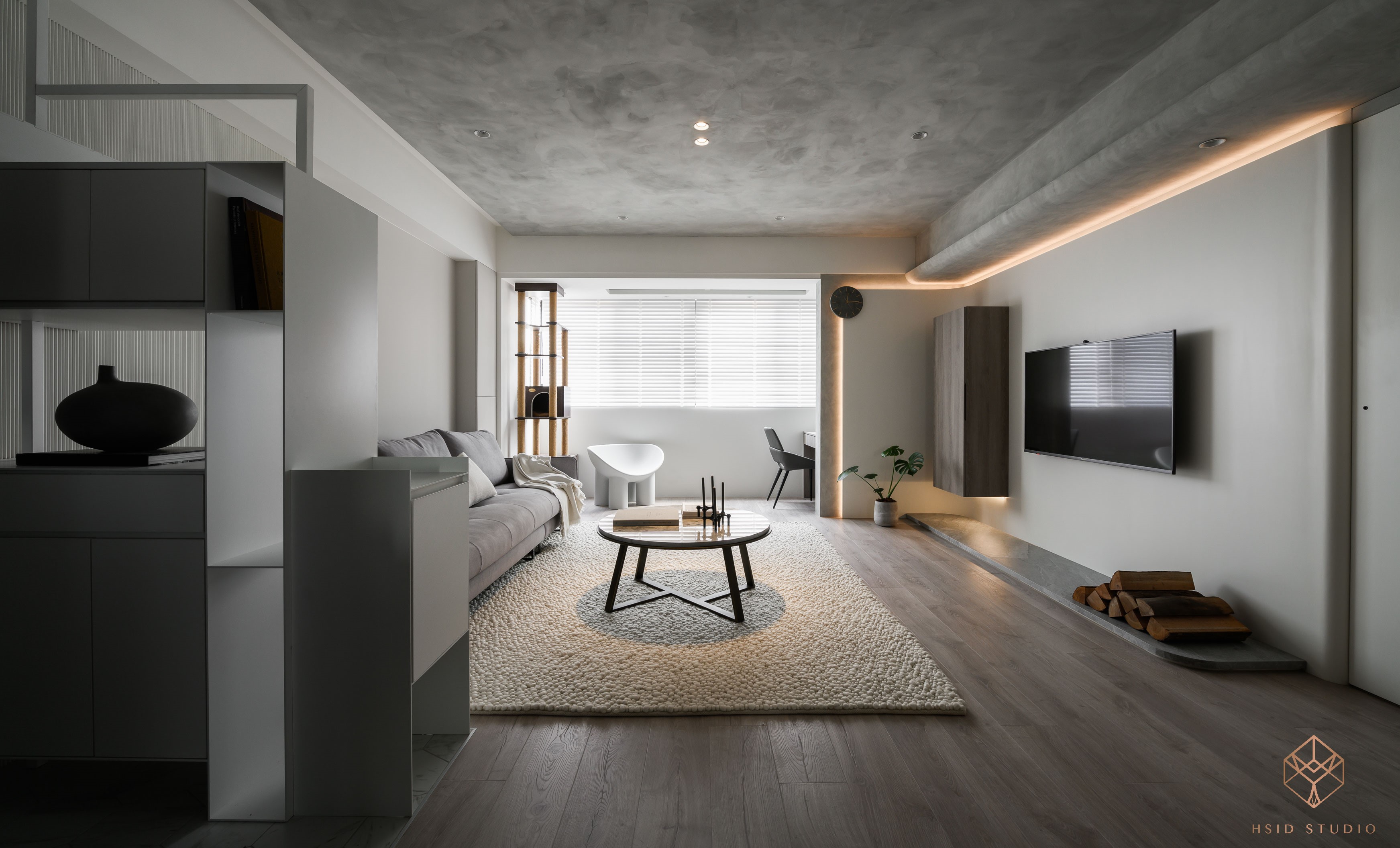 材質-鐵件、隔柵飾板、清水模塗料、薄板、系統板、美耐板、灰鏡、茶鏡、玻璃、乳膠漆、超耐磨木地板