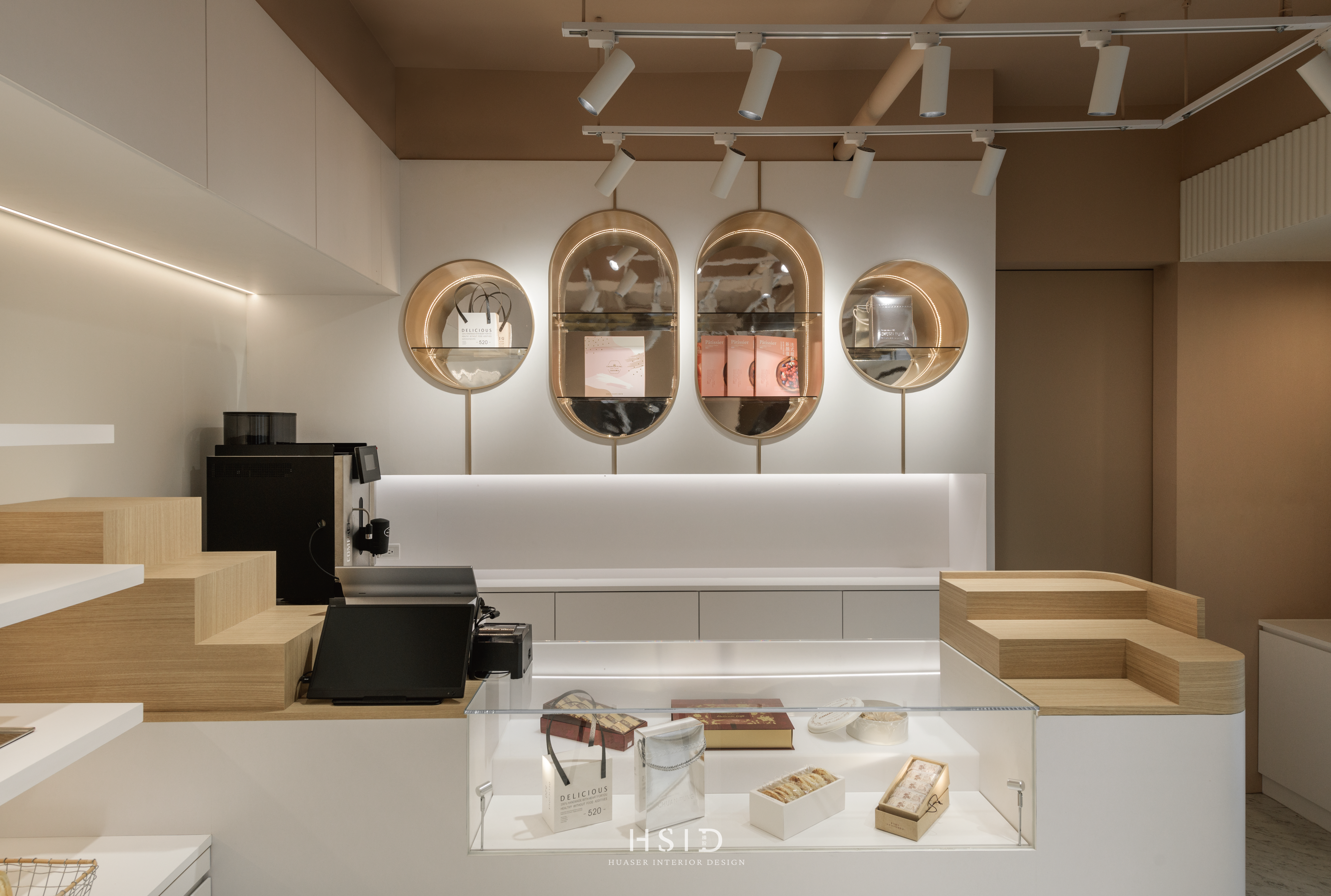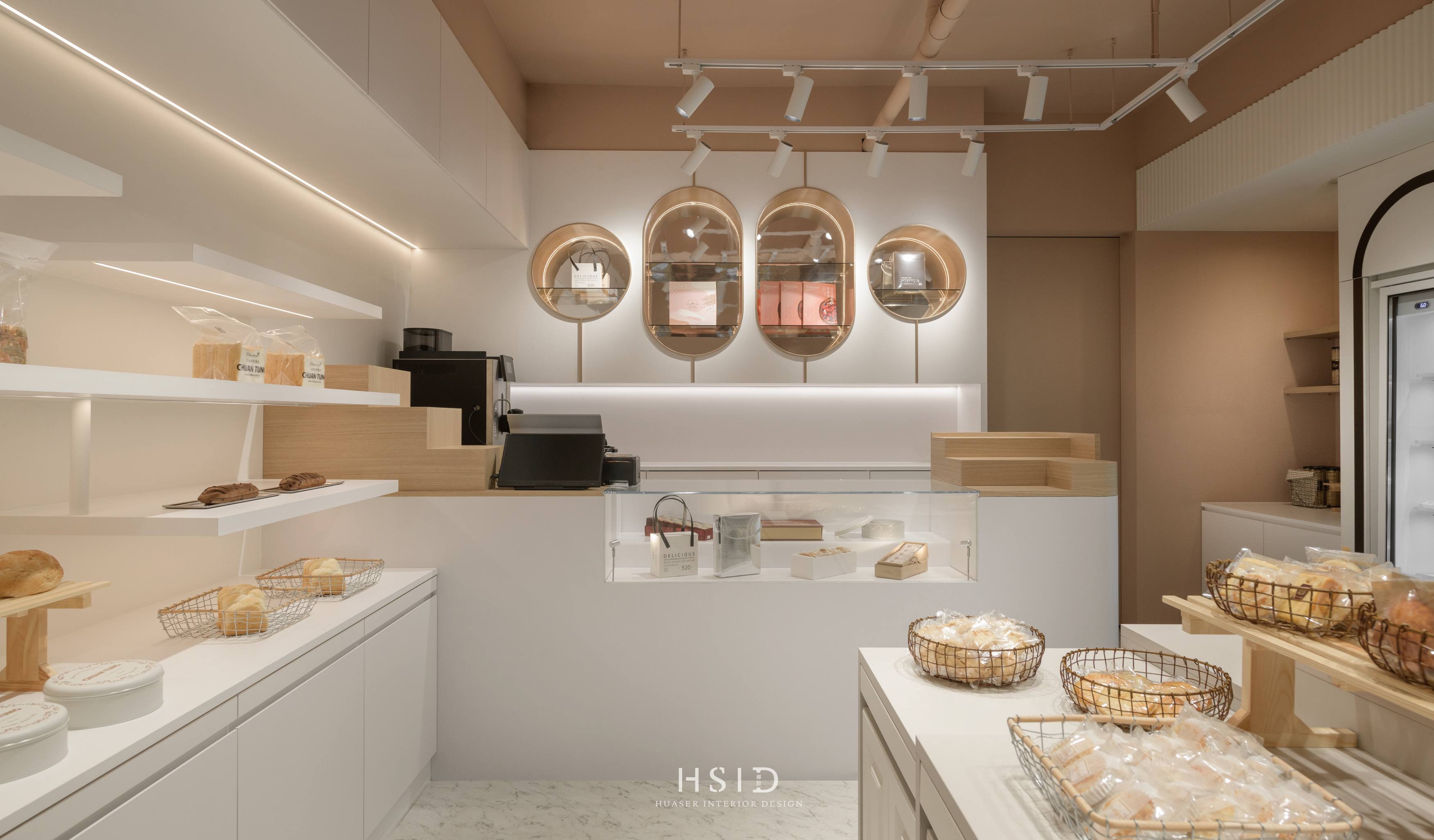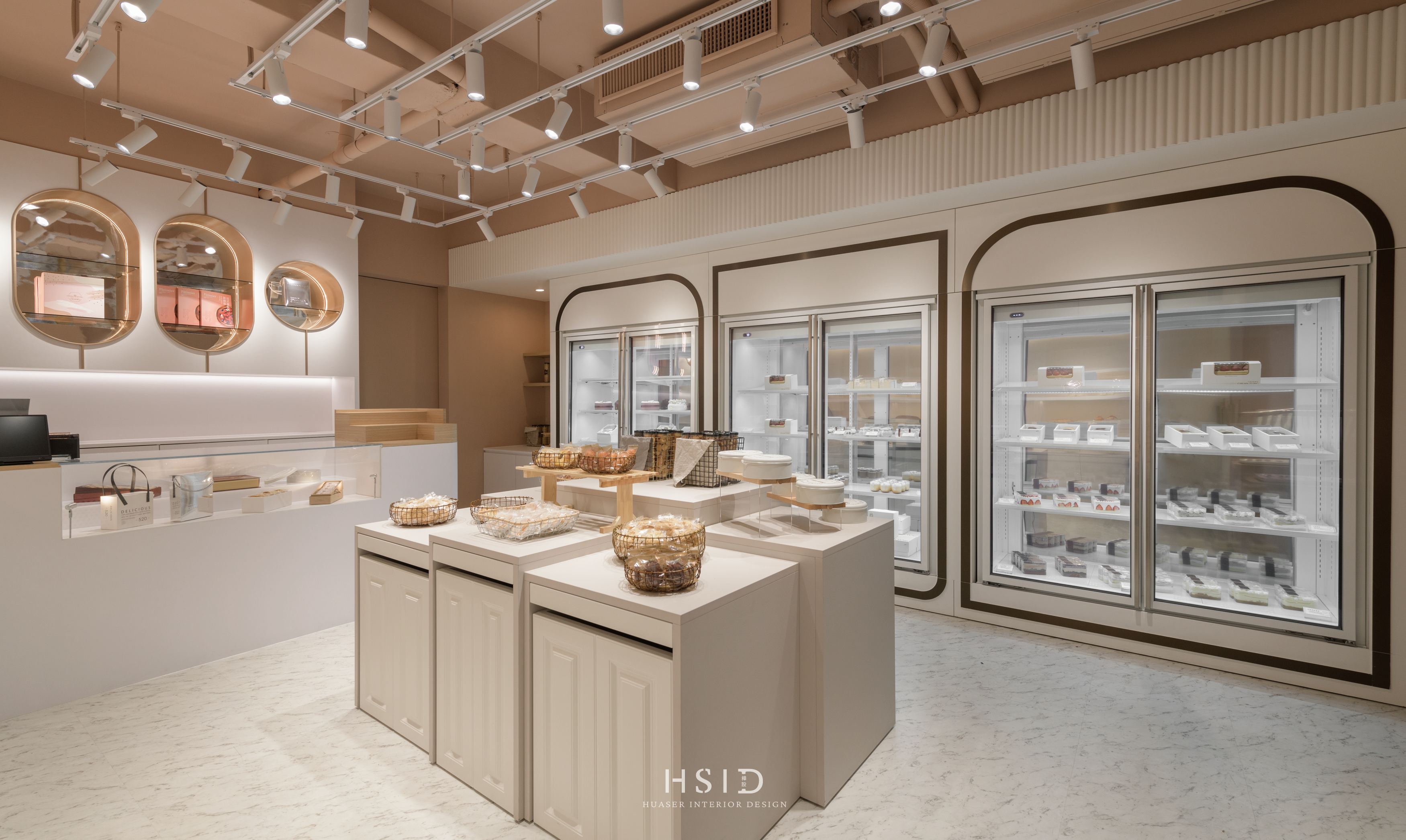 店內空間主要以淺色調為主。營造出明亮氛圍,更能突顯每款甜點和麵包的手藝細緻和技術,讓它們更加顯眼和吸引人。