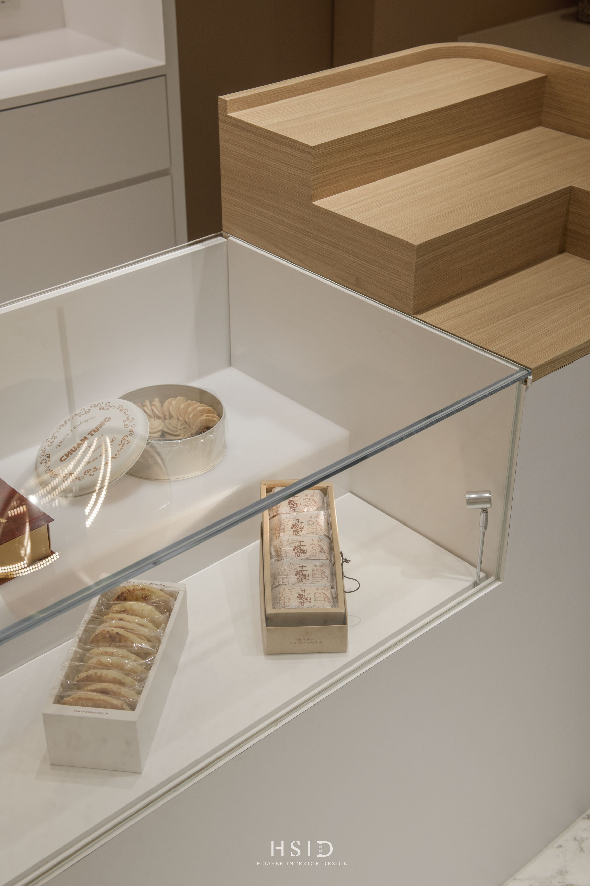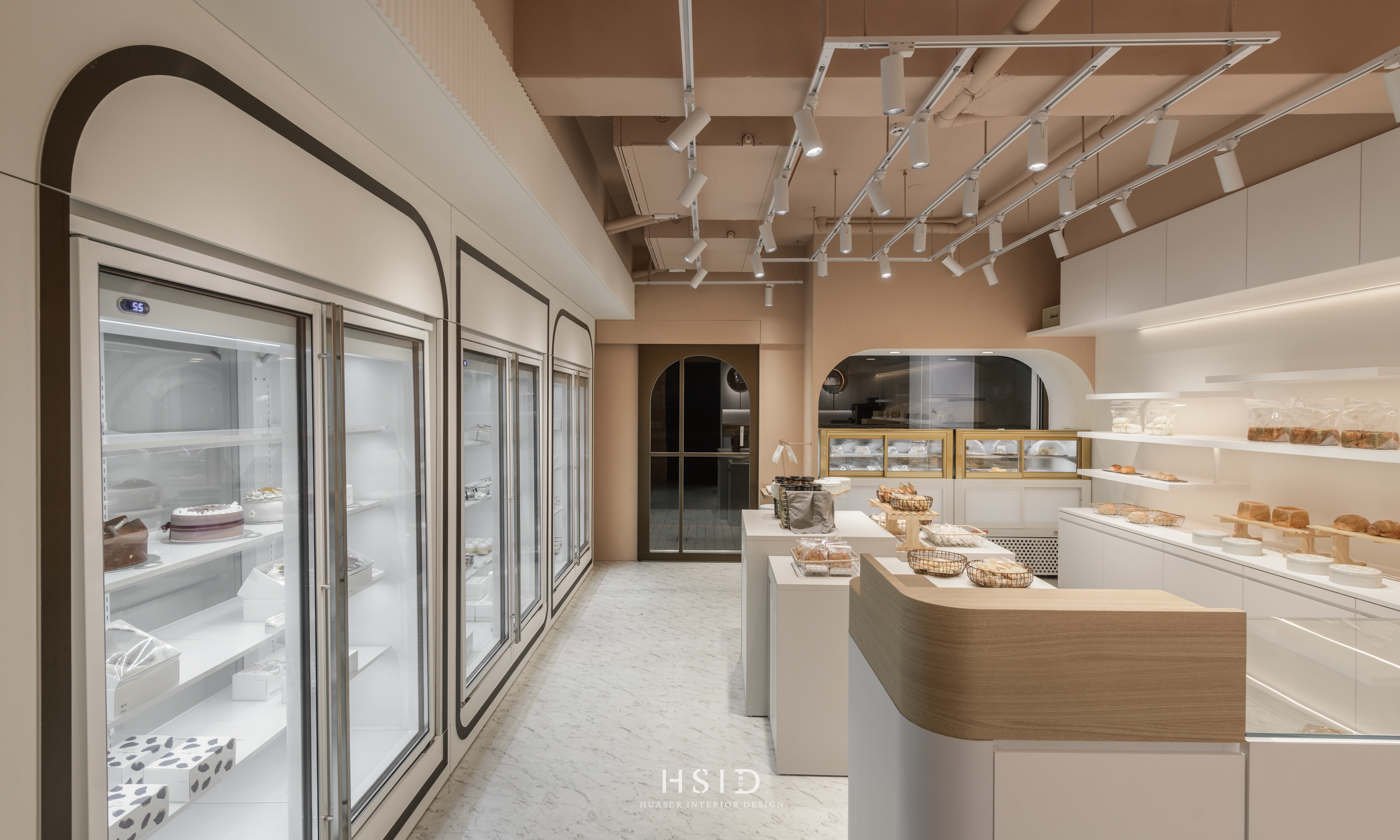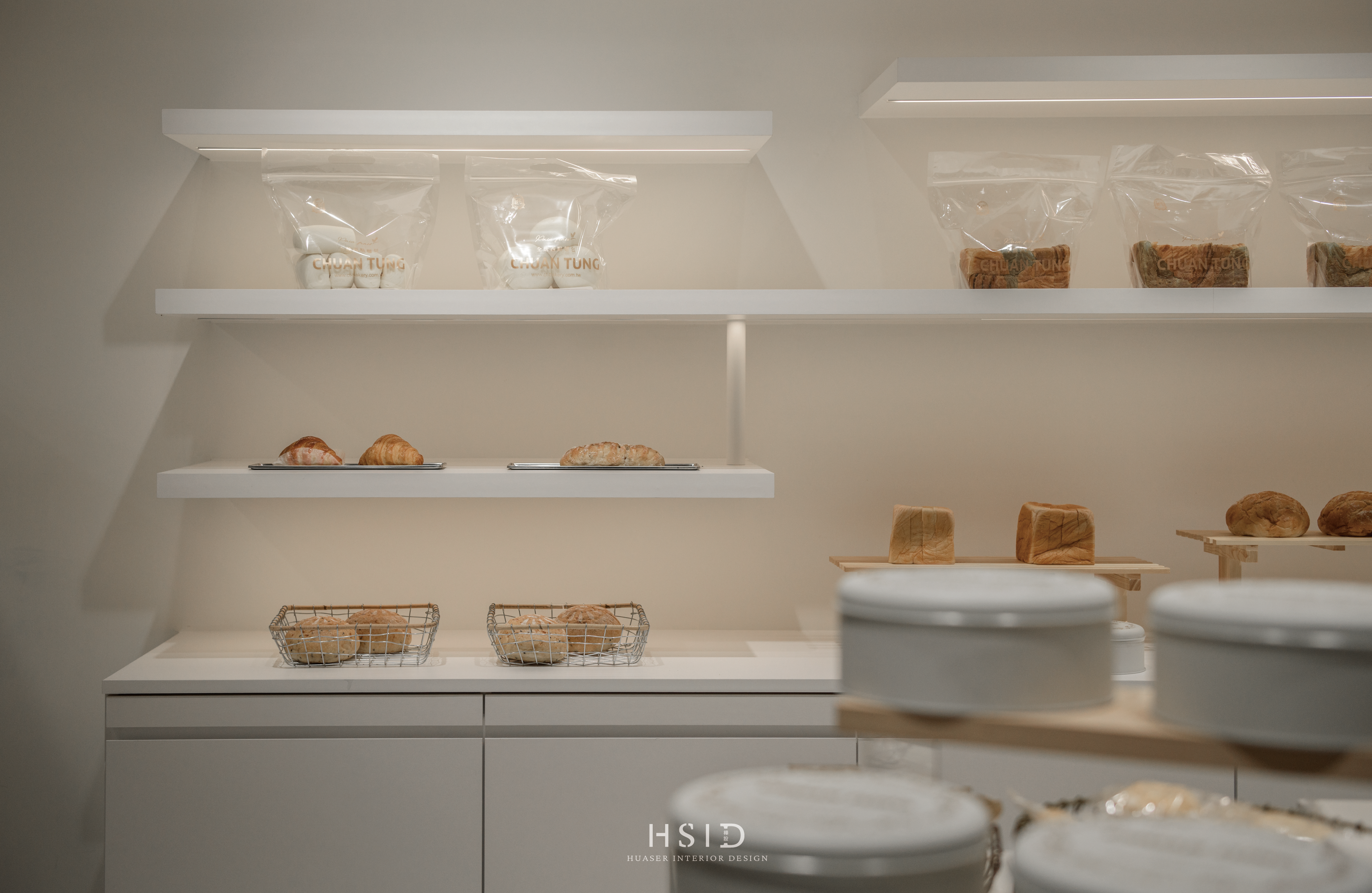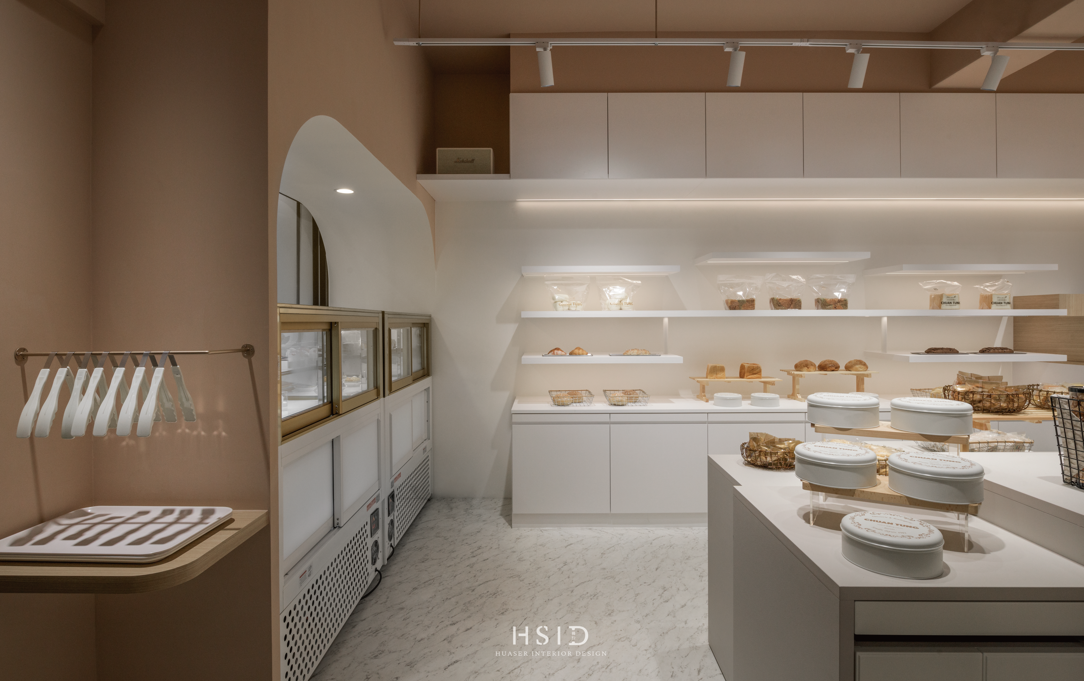 店內空間主要以淺色調為主。營造出明亮氛圍,更能突顯每款甜點和麵包的手藝細緻和技術,讓它們更加顯眼和吸引人。
