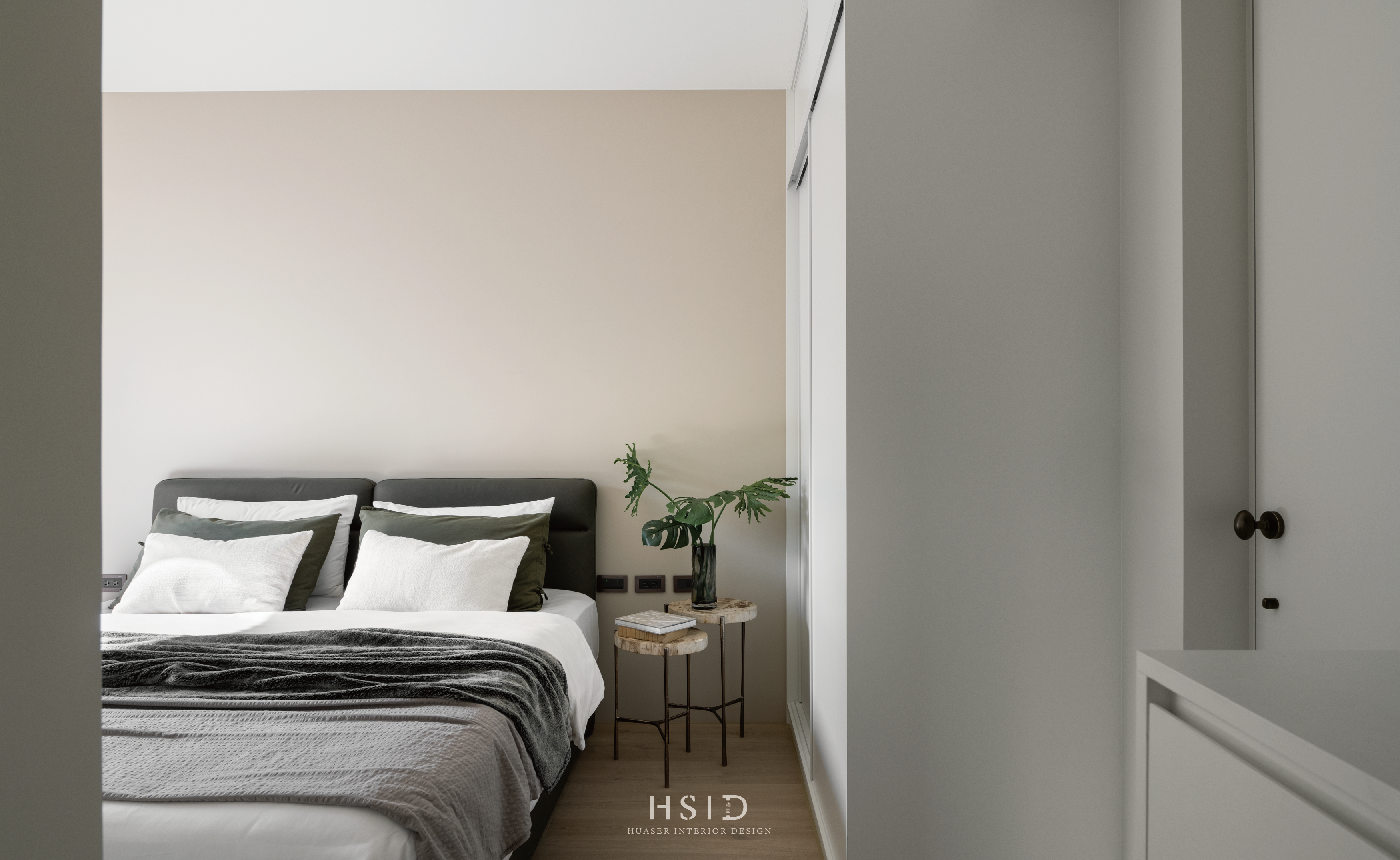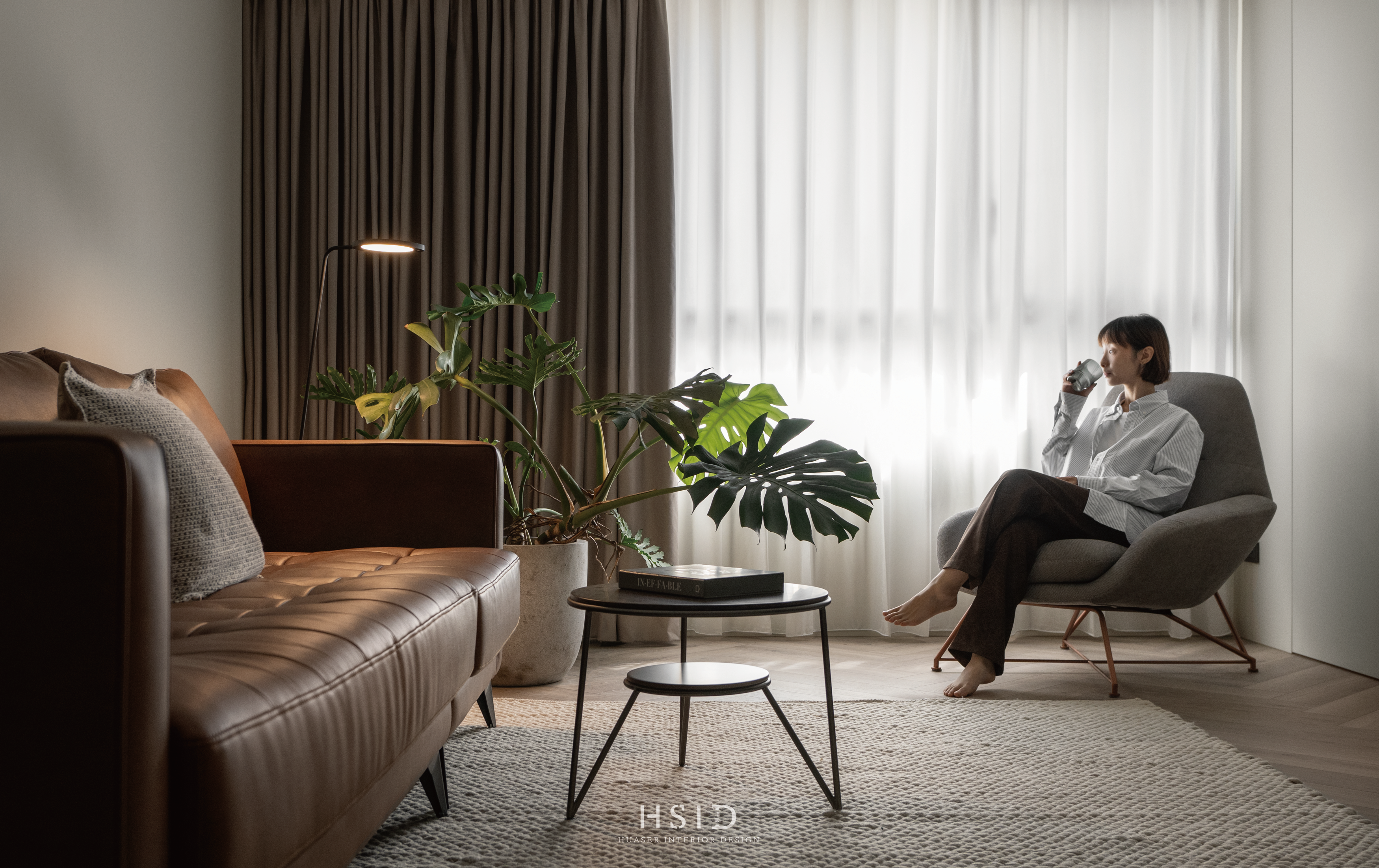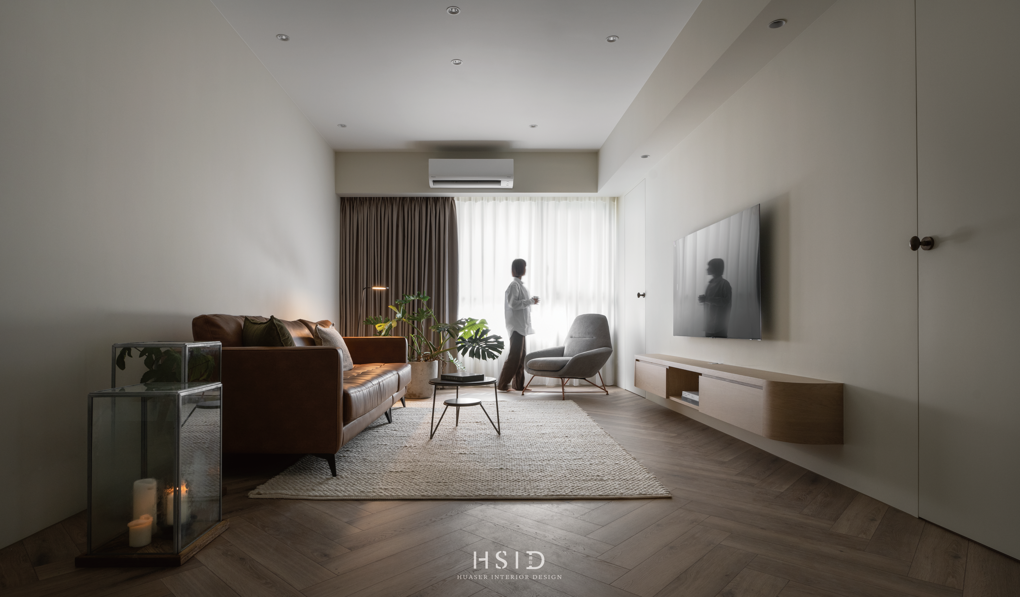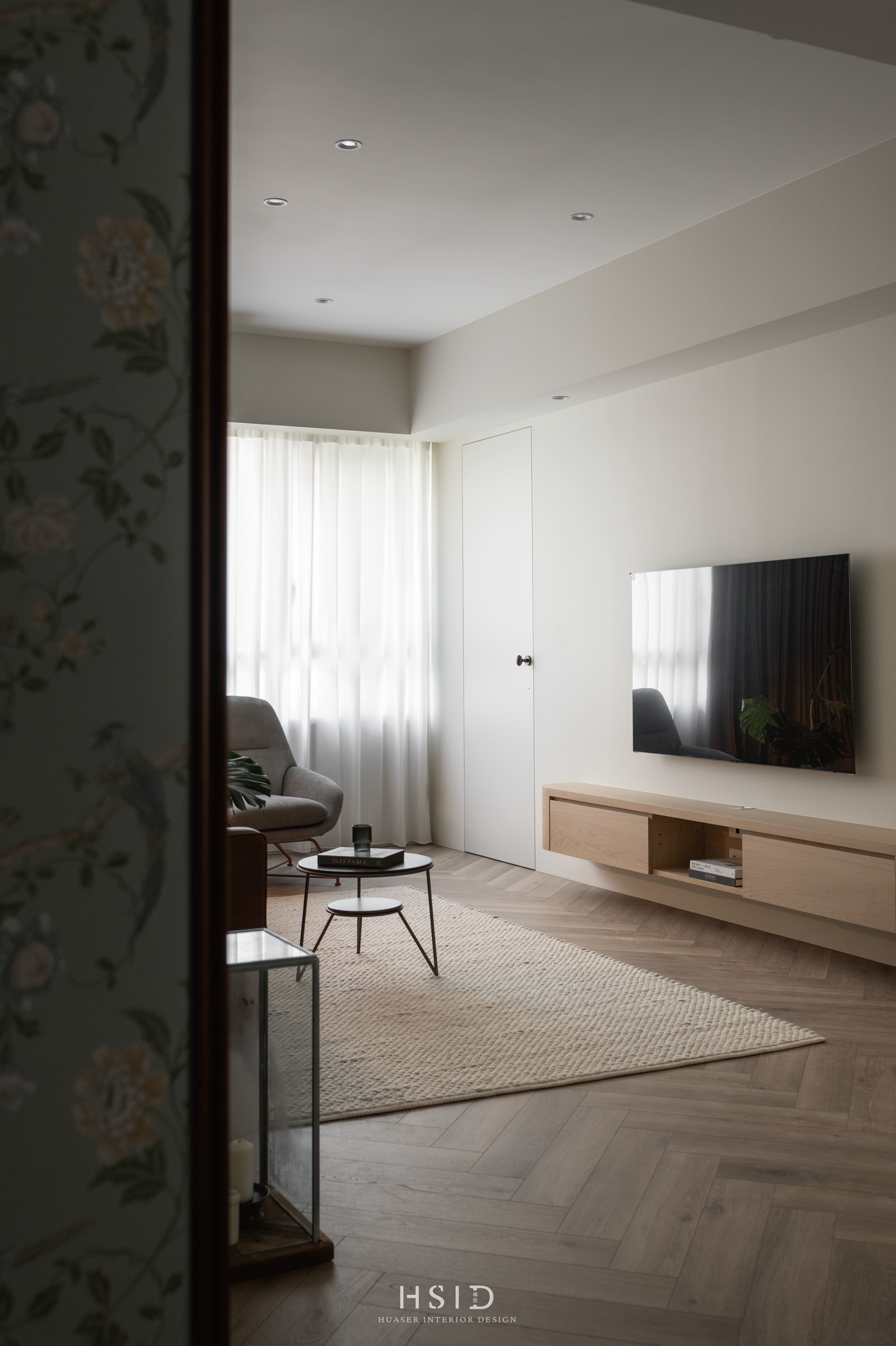 另外,特別規劃了一處端景區,以供未來擺放屋主喜愛的畫作或打造獨特的回憶牆,豐富了家居的藝術氛圍。同時,為滿足屋主的需求,特製了一面頂天立地鏡,不僅能夠滿足平日瑜珈需求,同時也具備了外出時的穿衣鏡功能,為生活增添了實用性和美感。屋主的用心與品味在每一處都得以體現,打造出一個充滿舒適和故事的家。