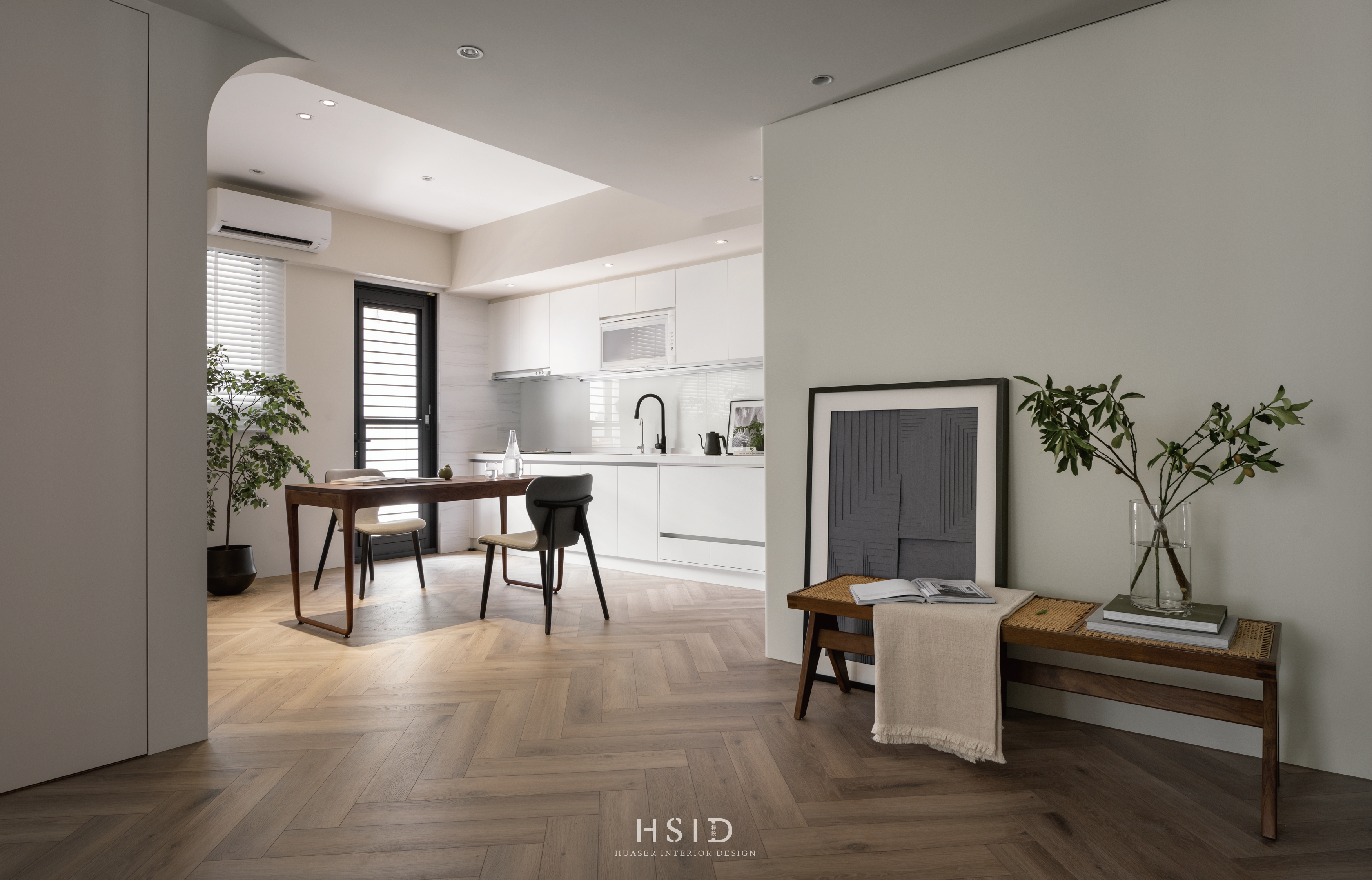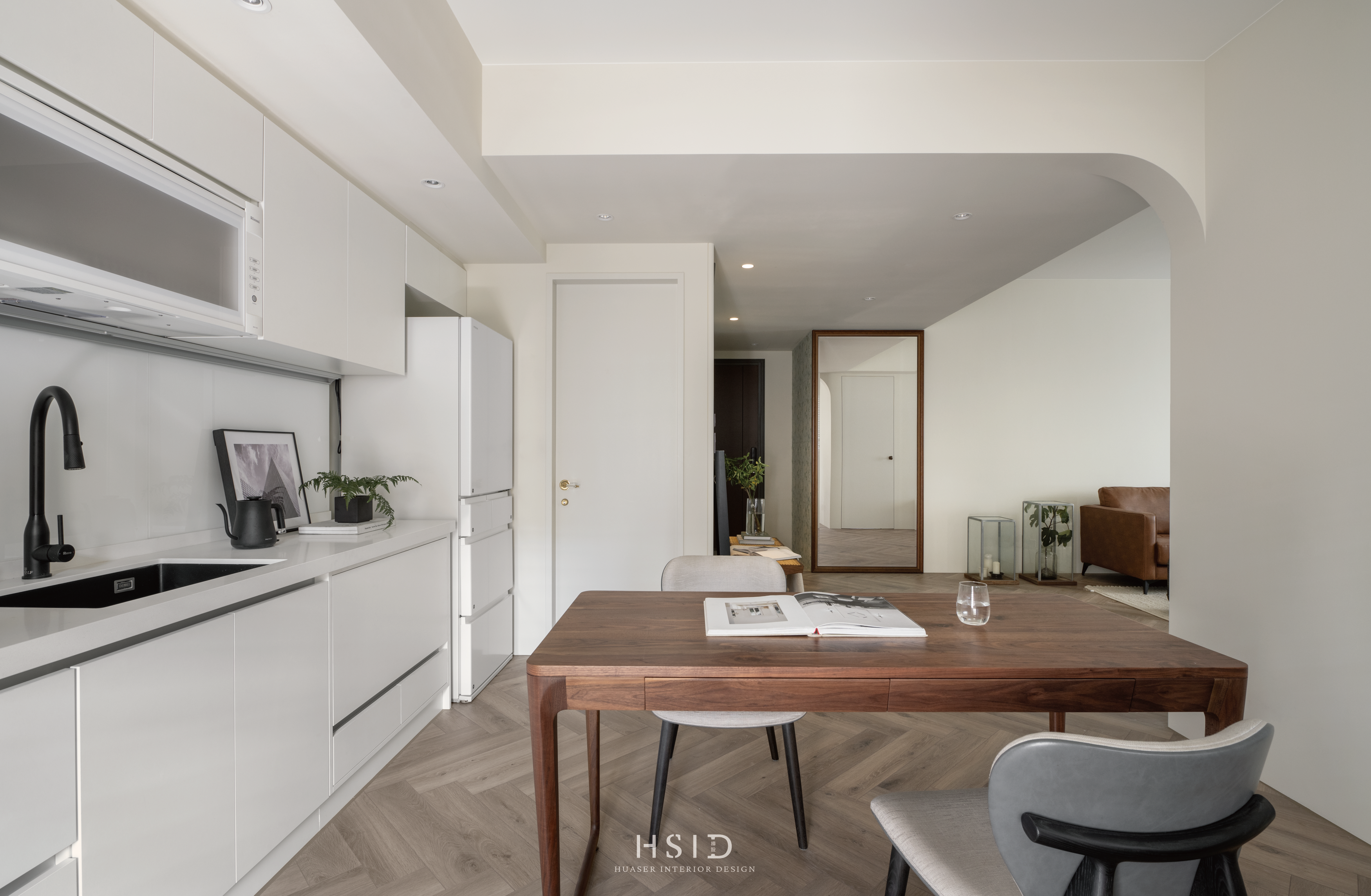 此次委託的是一位女屋主,在整體規劃上注重以軟裝為主,希望能夠隨季節或歲月的變遷而輕鬆替換喜愛的裝飾配件。在軟件的挑選上,不僅講究質感,整體造型和色系也與整體風格相契合。整體規劃上我們將原有廚房隔間拆除,打通全體一室的樣貌,通透大方。