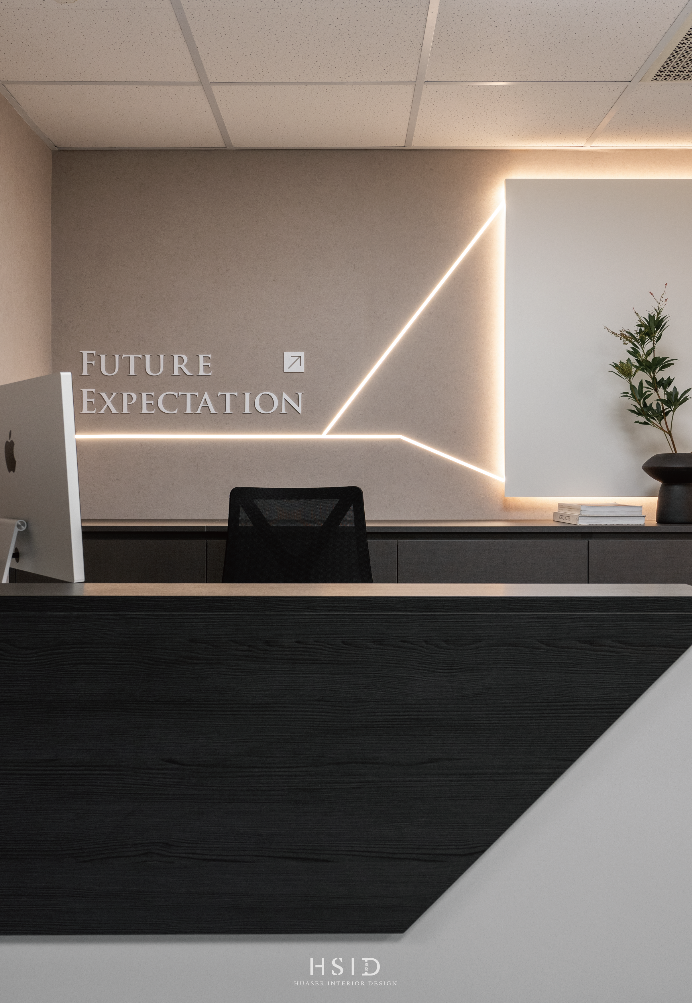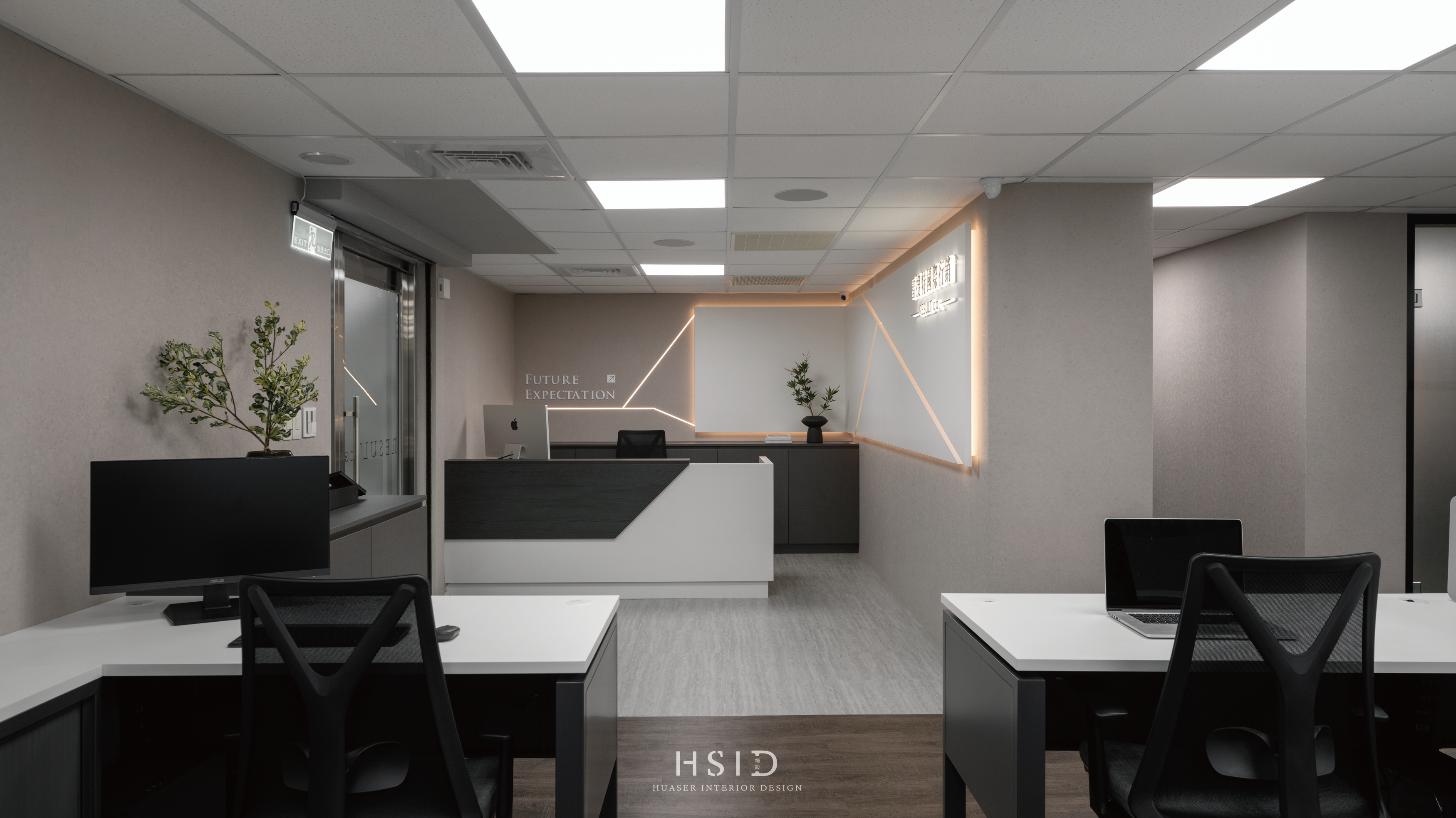 在現代都市的脈動中,辦公室早已超越了單純的工作場所,演變為一個突顯企業文化和品味的關鍵空間,致力於提升工作效率並打造宜人工作環境。大門空間以獨特的幾何線條和燈光效果展現出簡潔俐落,營造現代科技的精緻感。地板配置以深淺色為代替隔間效果。精心挑選的植物點綴在空間的各個角落,不僅增添了生機與自然元素,更帶來了一絲清新的氛圍。